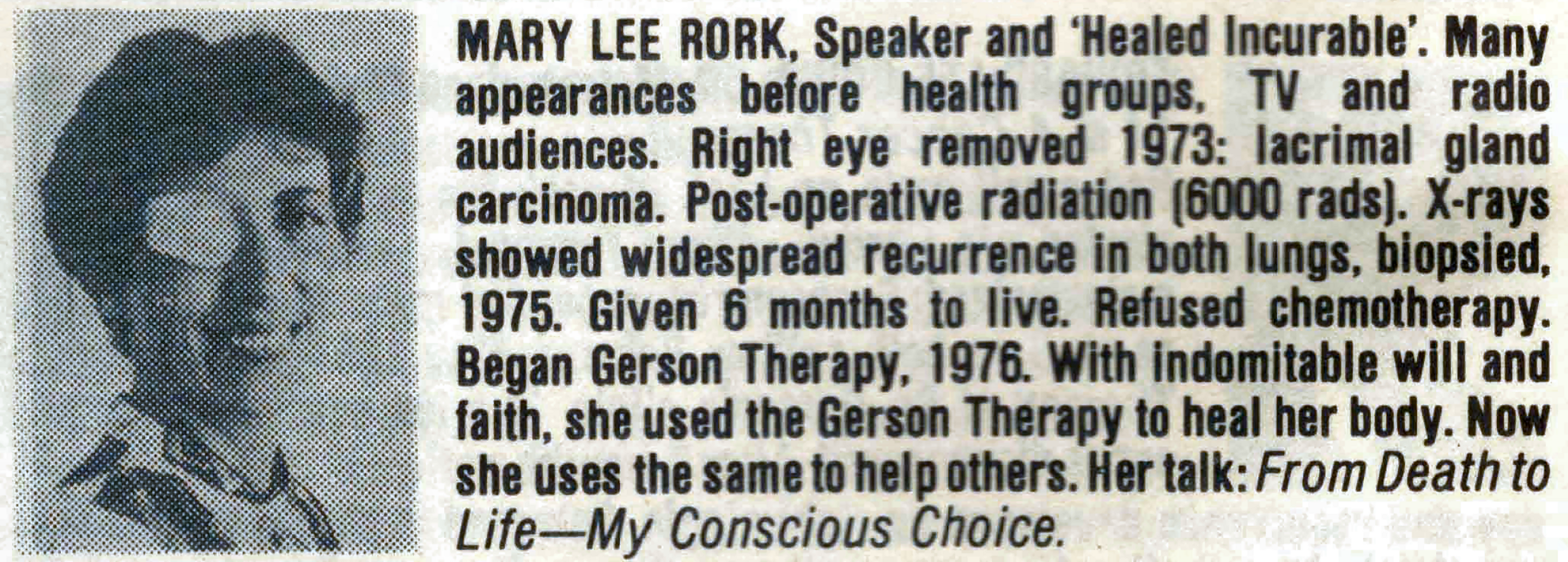 #3 in Some additional information with Mary Lee is in the Tape 13 Transcript. Image from 1981 Volume 1 Number 1 Journal of the Gerson Institute |
